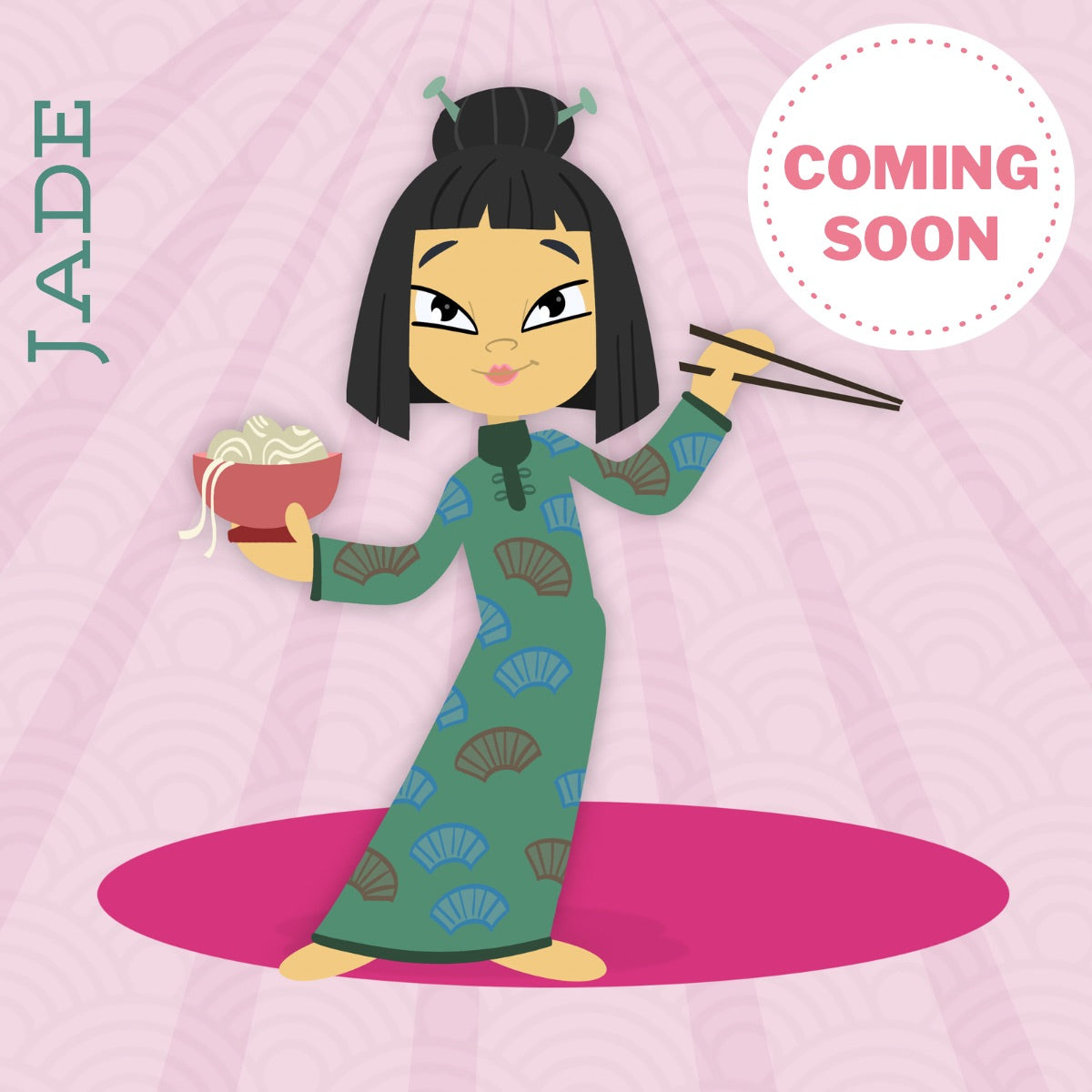 Jade loves reading and poetry. Her heroine is Li Qingzhao who is known as China’s greatest female poet. She was created to inspire intelligence in little girls, to teach them that their ideas, interests, thoughts and creativity should never be watered down and that they hold the power to have a positive effect on the environment around them with their fierce mind.